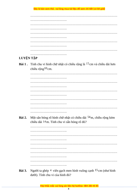 Chuyên đề Chu vi hình chữ nhật Toán lớp 3 nâng cao Cánh diều