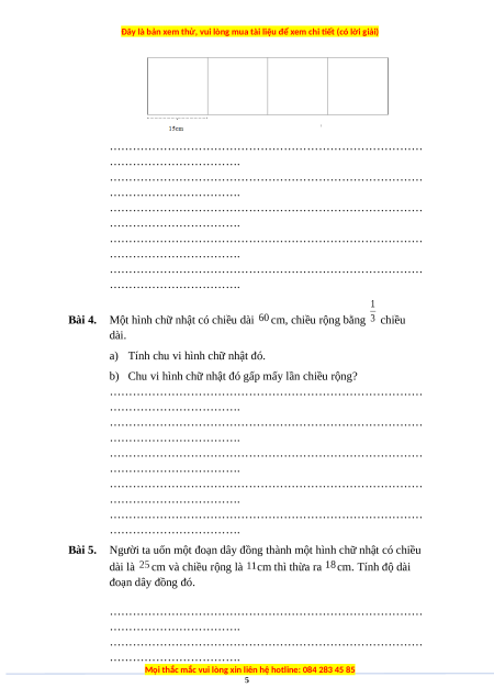 Bài 5. Người ta uốn một đoạn dây đồng thành một hình chữ nhật có chiều