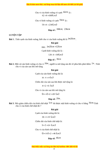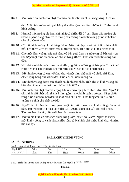 BÀI 18. CHU VI HÌNH VUÔNG BÀI TẬP ÁP DỤNG