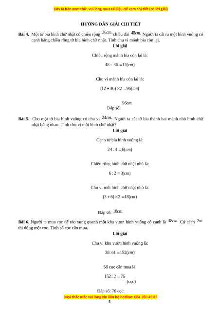 Bài 5. Cho một tờ bìa hình vuông có chu vi là 24 cm. Người ta cắt tờ bìa thành hai
