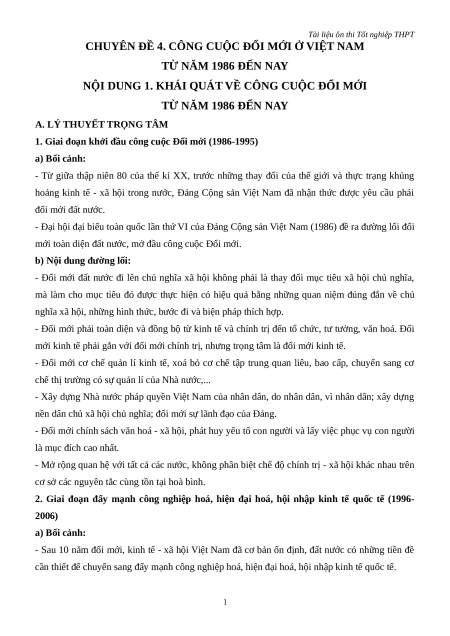 Chuyên đề Công cuộc đổi mới ở Việt Nam từ năm 1986 đến nay (Ôn thi Tốt nghiệp Lịch Sử 2025)