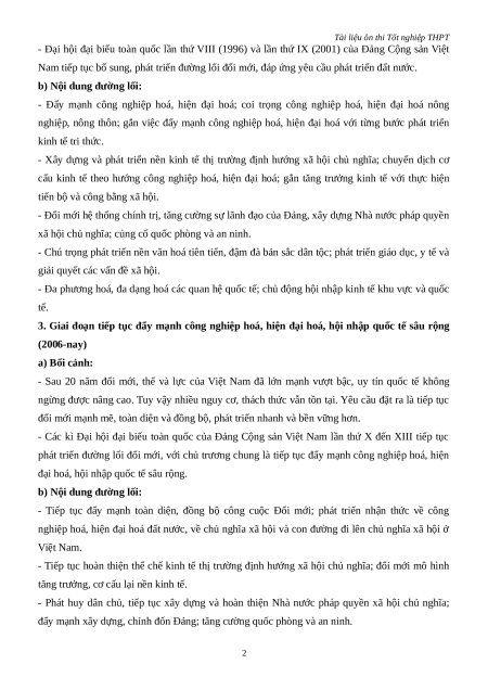 Câu 10. Trong giai đoạn 1996-2006, ở Việt Nam, công cuộc công nghiệp hóa, hiện đại hóa