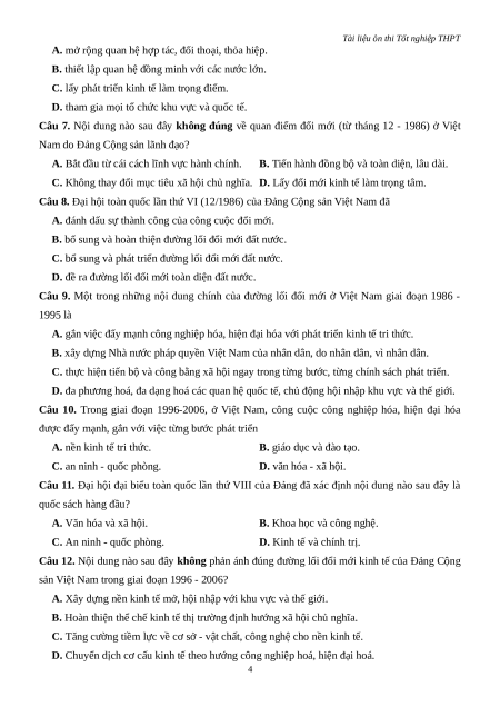 Câu 7. Nội dung nào sau đây không đúng về quan điểm đổi mới (từ tháng 12 - 1986) ở Việt