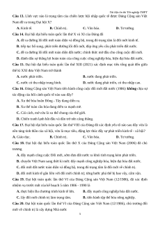 Câu 8. Đại hội toàn quốc lần thứ VI (12/1986) của Đảng Cộng sản Việt Nam đã