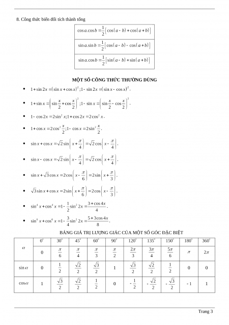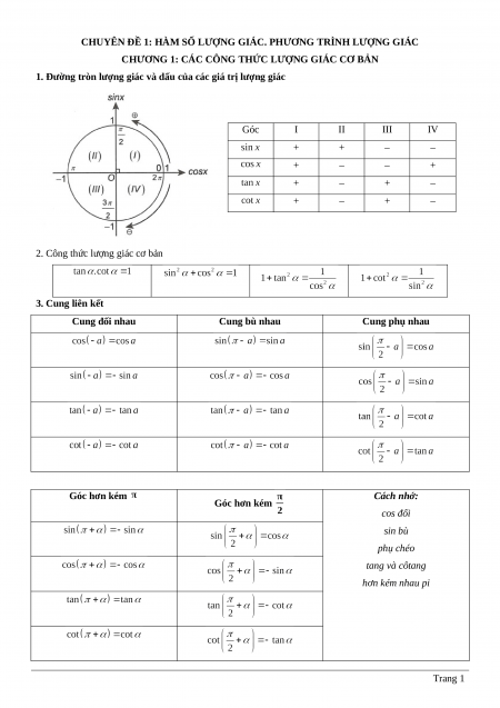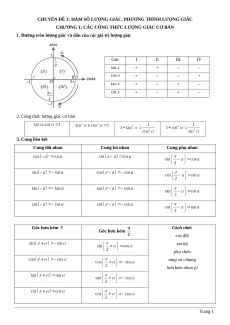 CHƯƠNG 1: CÁC CÔNG THỨC LƯỢNG GIÁC CƠ BẢN