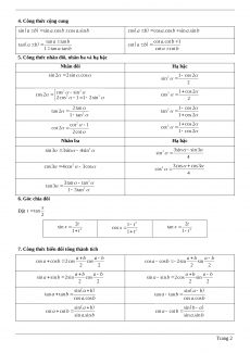 2. Công thức lượng giác cơ bản 3. Cung liên kết Cung đối nhau Cung bù nhau Cung phụ nhau Góc hơn kém Cách nhớ: Góc hơn kém cos đối sin bù phụ chéo tang và côtang hơn kém nhau pi Trang 1