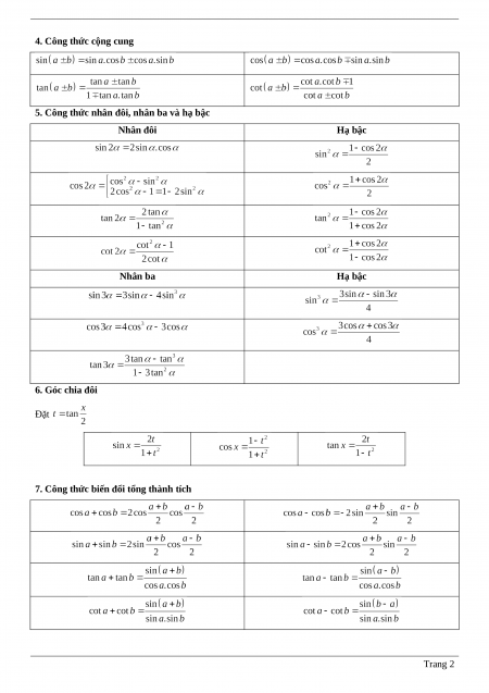 5. Công thức nhân đôi, nhân ba và hạ bậc