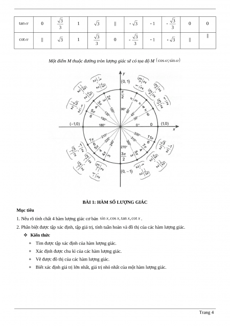 BÀI 1: HÀM SỐ LƯỢNG GIÁC Mục tiêu