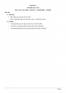 BÀI 1. QUY TẮC ĐẾM – HOÁN VỊ - CHỈNH HỢP – TỔ HỢP Mục tiêu Kiến thức