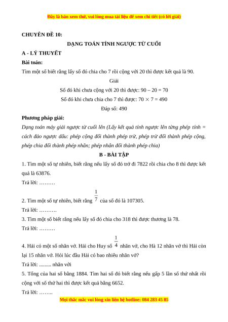 DẠNG TOÁN TÍNH NGƯỢC TỪ CUỐI