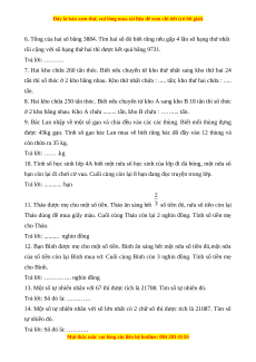 được 45kg gạo. Tính số gạo bác Lan mua về biết rằng bác đổ đầy vào 12 thùng và còn thừa ra 35 kg. Trả lời: …… .kg