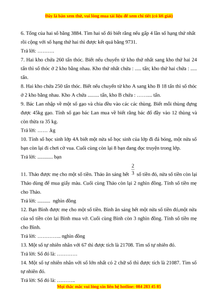 Đây là bản xem thử, vui lòng mua tài liệu để xem chi tiết (có lời giải)