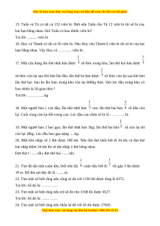 lần thứ hai. Sau ba lần bán, trong kho còn lại 600kg thóc. Hỏi lúc đầu trong kho có bao nhiêu ki-lô-gam thóc? Trả lời: …………..kg