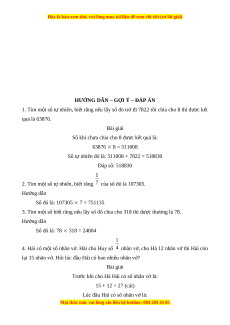 1. Tìm một số tự nhiên, biết rằng nếu lấy số đó trở đi 7822 rồi chia cho 8 thì được kết quả là 63876. Trả lời: ………