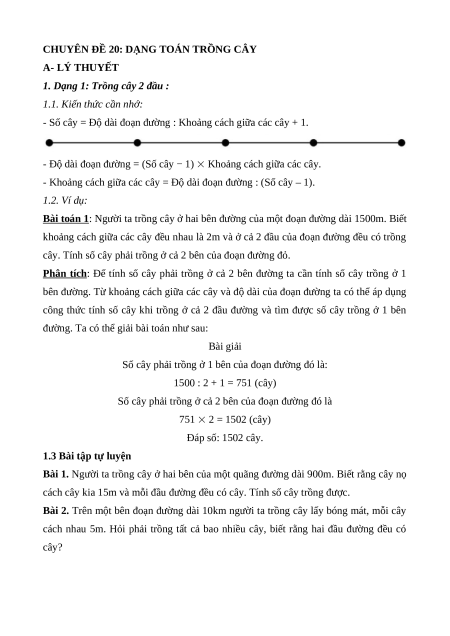 CHUYÊN ĐỀ 20: DẠNG TOÁN TRỒNG CÂY A- LÝ THUYẾT