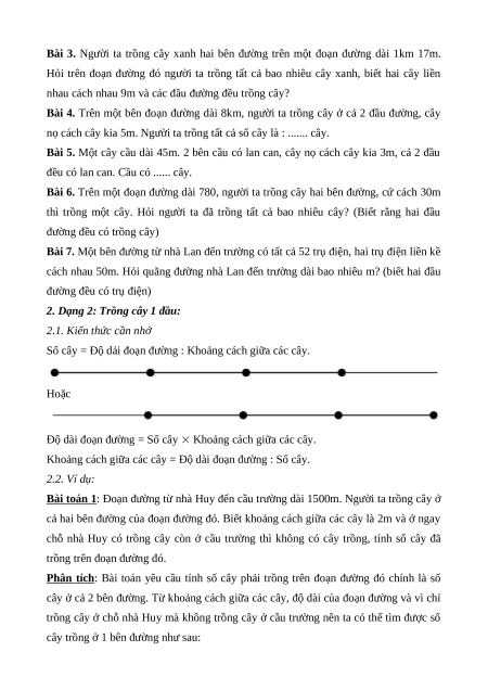 - Khoảng cách giữa các cây = Độ dài đoạn đường : (Số cây – 1). 1.2. Ví dụ: