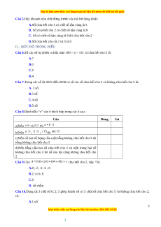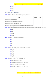 ợ quá 20 mà chia hết cho 2 nh ng không c ư hia h t ế cho 5 là: A.8 số B.9 số C.10 số D.11 số Câu 13.T ng ổ 1.2.3.4.5 + 117 chia 5 d : ư A.1 B.2 C.3 D.4