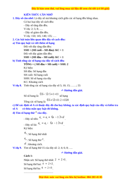 1. Dãy số cần nhớ: Là dãy số mà khoảng cách giữa các số hạng đều bằng nhau.