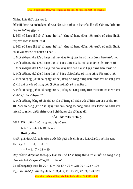 CHUYÊN ĐỀ 9: DÃY SỐ TỰ NHIÊN, DÃY SỐ THEO QUY LUẬT