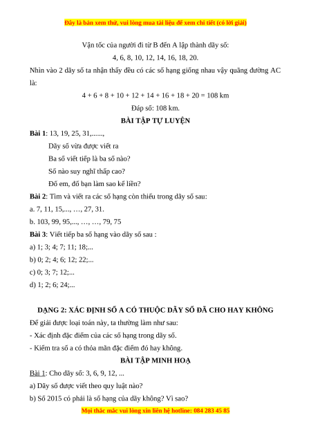 DẠNG 2: XÁC ĐỊNH SỐ A CÓ THUỘC DÃY SỐ ĐÃ CHO HAY KHÔNG