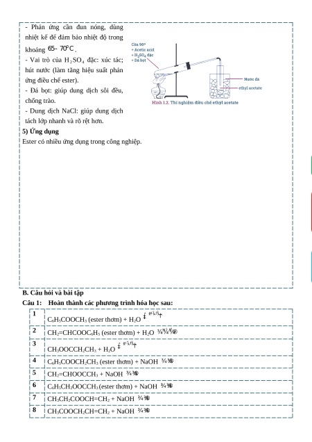 Chủ đề 2: TÍNH CHẤT, ỨNG DỤNG, ĐIỀU CHẾ ESTER