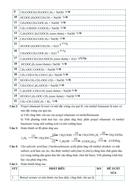 C6H5OOCCH2CH2COOCH3 (ester thơm) + H2O 18 HCOOC6H5 (ester thơm)+ NaOH 19 CH3-OOC-COOCH3 + NaOH 20 CH3-COO-CH2-COO-C2H5+ NaOH 21 HCOO-CH2-CH2-OOC-CH3 + NaOH 22 CH3COO-C3H6-OOCH + NaOH 23