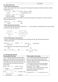 - Polymer có thể tham gia các phản ứng hóa học mà không làm thay đổi chiều dài mạch polymer. + Phản ứng thủy phân: