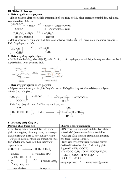 - Một số polymer bị phân hủy nhiệt thành các polymer mạch ngắn, cuối cùng tạo ra monomer ban đầu → Phản ứng depolymer hóa.