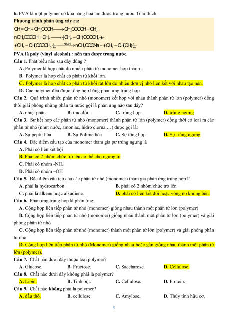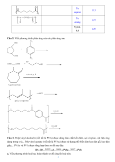 Câu 3. Poly(vinyl alcohol) (viết tắt là PVA) được dùng làm chất kết dính, sợi vinylon, vật liệu ứng