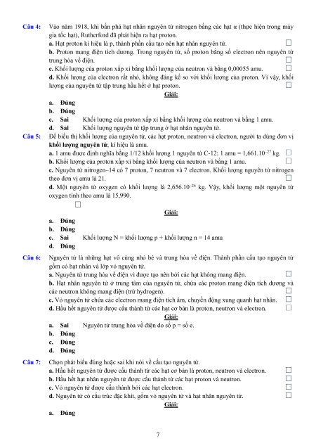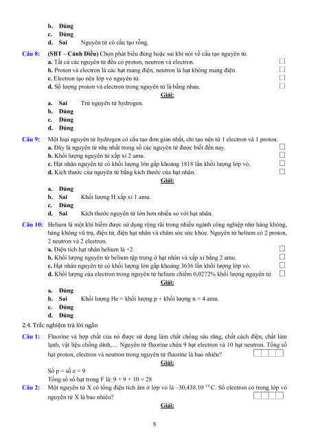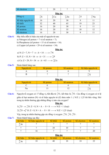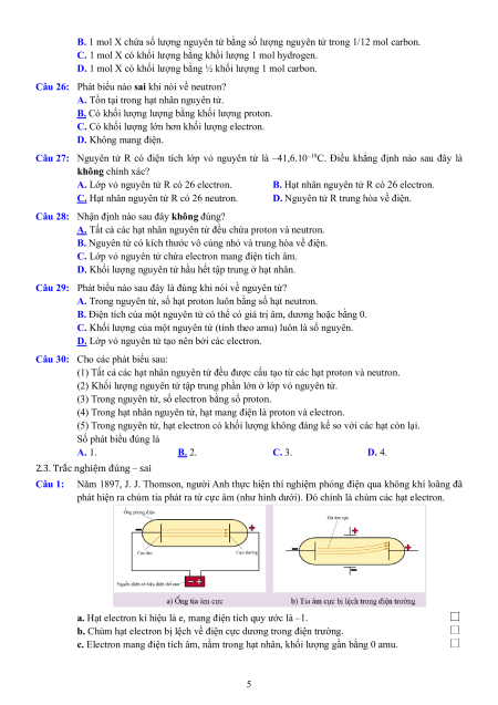 5. có số hạt mang điện nhiều gấp hai lần số hạt không mang điện. Đáp án: (a) – (1), (2) và (5) (b) – (1), (3), (4) và (5)