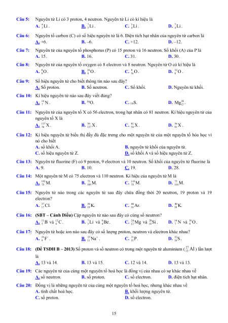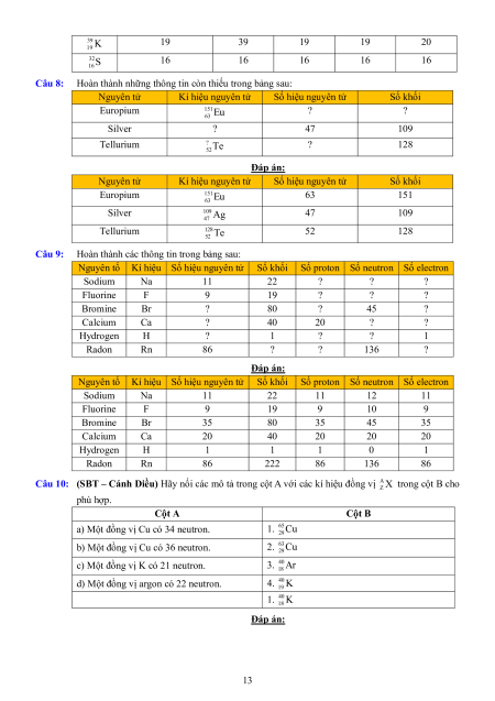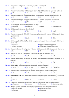 Câu 16: Trong nguyên tử aluminium (Al), số hạt mang điện tích dương là 13, số hạt không mang điện là