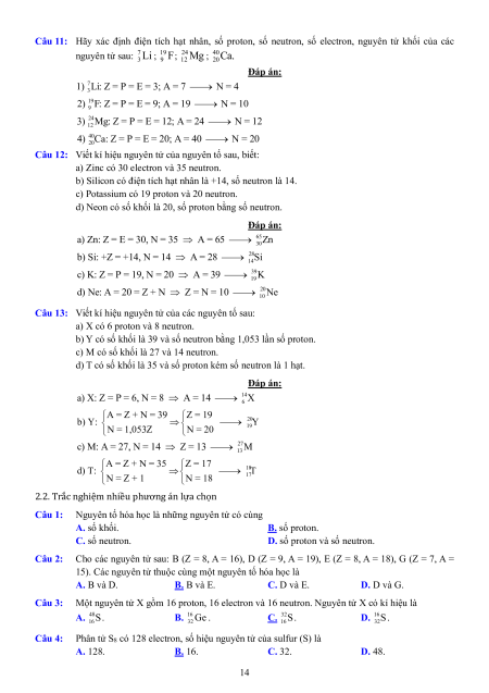 Câu 1: Các hạt cấu tạo nên hạt nhân của hầu hết các nguyên tử là A. electron và proton. B. proton và neutron.