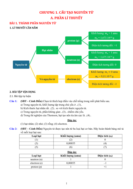 CHƯƠNG 1. CẤU TẠO NGUYÊN TỬ A. PHẦN LÍ THUYẾT