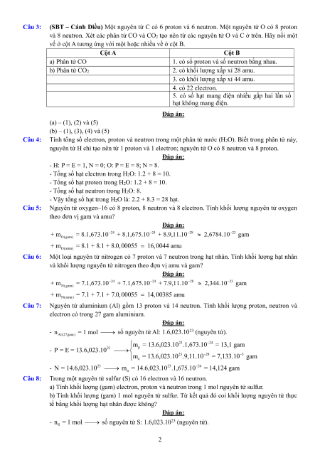 Câu 3: (SBT – Cánh Diều) Một nguyên tử C có 6 proton và 6 neutron. Một nguyên tử O có 8 proton