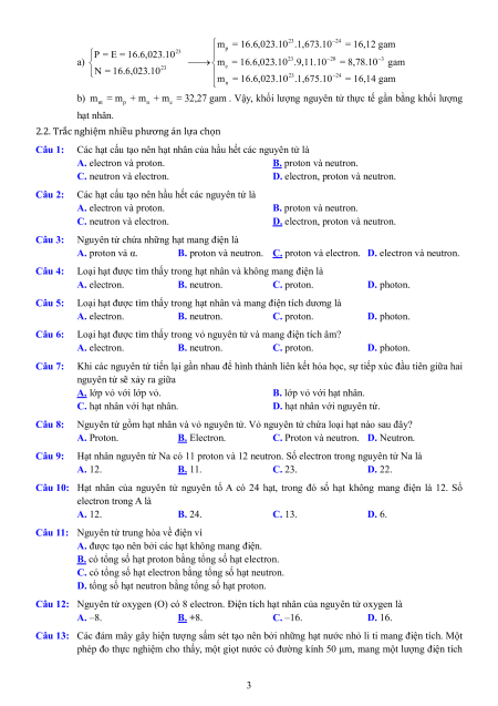 b) m = m + m + m = 32,27 gam . Vậy, khối lượng nguyên tử thực tế gần bằng khối lượng nt p n e hạt nhân.