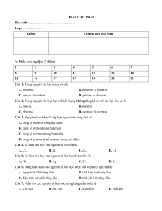 Câu 1. Trong nguyên tử, hạt mang điện là A. electron.