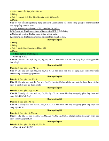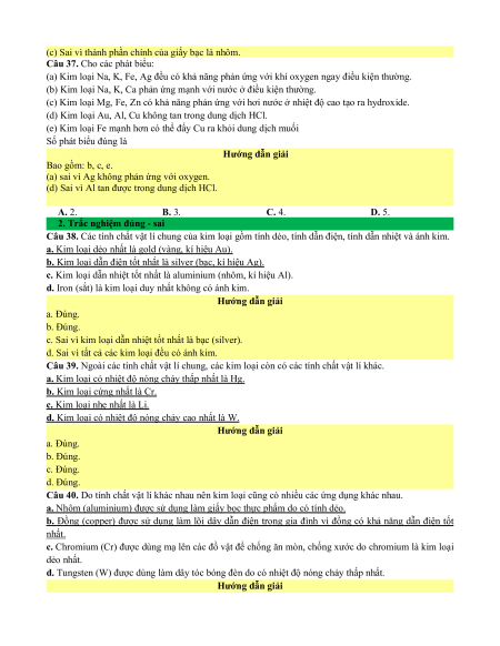 (d) (4) …………….…… được dùng làm dụng cụ nấu bếp là do bền trong không khí và dẫn nhiệt tốt. Hướng dẫn giải