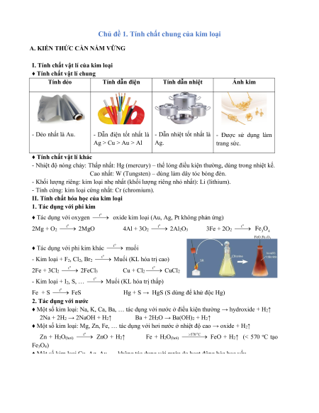- Nhiệt độ nóng chảy: Thấp nhất: Hg (mercury) – thể lỏng điều kiện thường, dùng trong nhiệt kế.