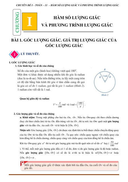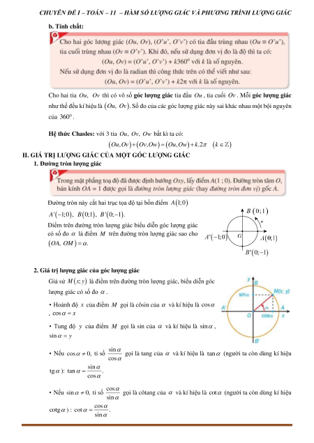 CHUYÊN ĐỀ I – TOÁN – 11 – HÀM SỐ LƯỢNG GIÁC VÀ PHƯƠNG TRÌNH LƯỢNG GIÁC