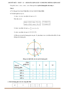 II. GIÁ TRỊ LƯỢNG GIÁC CỦA MỘT GÓC LƯỢNG GIÁC