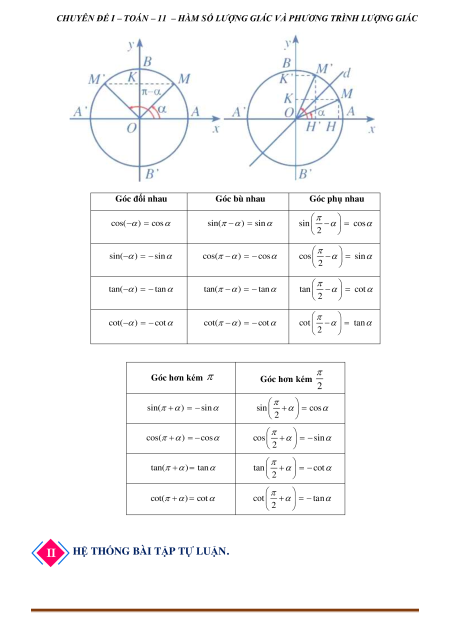 CHUYÊN ĐỀ I – TOÁN – 11 – HÀM SỐ LƯỢNG GIÁC VÀ PHƯƠNG TRÌNH LƯỢNG GIÁC NG I