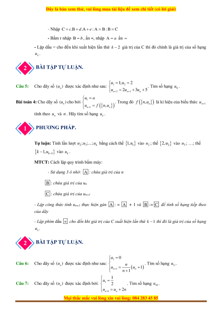 - Lặp dấu = cho đến khi xuất hiện lần thứ k − 2 giá trị của C thì đó chính là giá trị của số hạng u . k