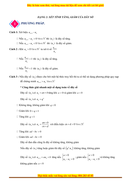 Chú ý: Không phải mọi dãy số đều tăng hoặc giảm. Chẳng hạn, dãy số u u n với 3 n tức là n
