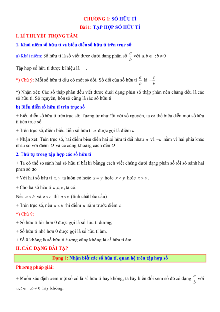 Dạng 1: Nhận biết các số hữu tỉ, quan hệ trên tập hợp số Phương pháp giải: