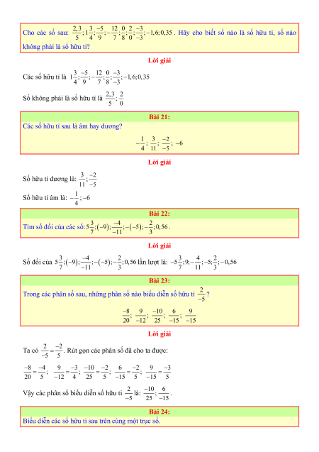 1. Khái niệm số hữu tỉ và biểu diễn số hữu tỉ trên trục số:
