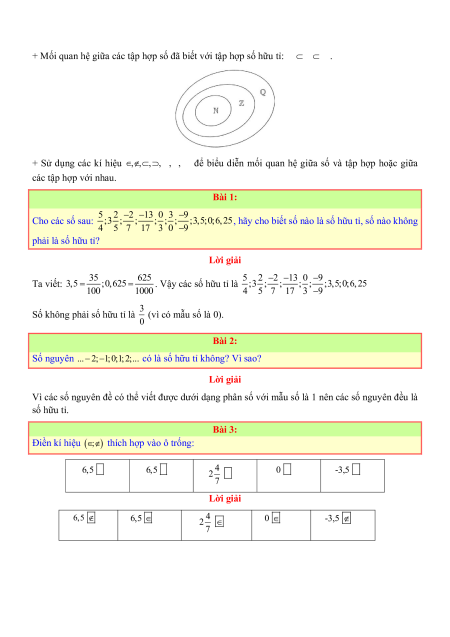 Dạng 1: Nhận biết các số hữu tỉ, quan hệ trên tập hợp số Phương pháp giải: