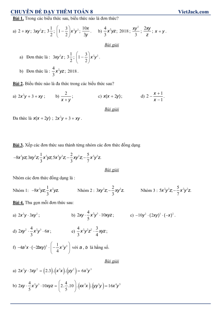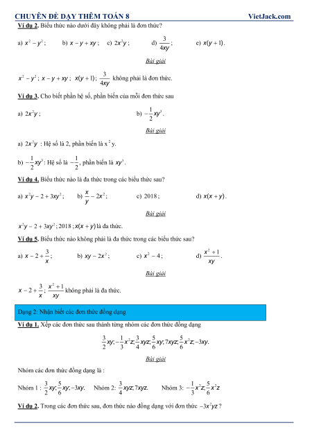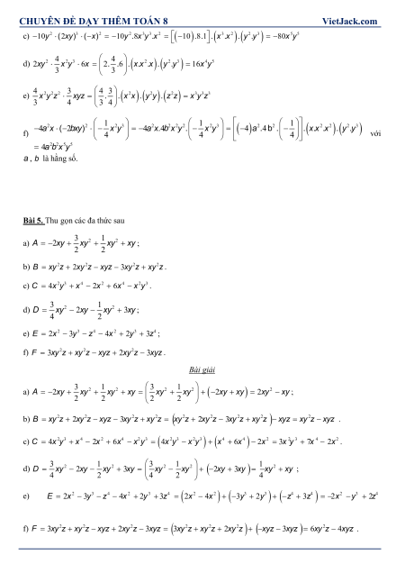 CHUYÊN ĐÊ DAY THÊM TOÁN 8 VietJack.com ĐƠN THỨC NHIỀU BIẾN. ĐA THỨC NHIỀU BIẾN