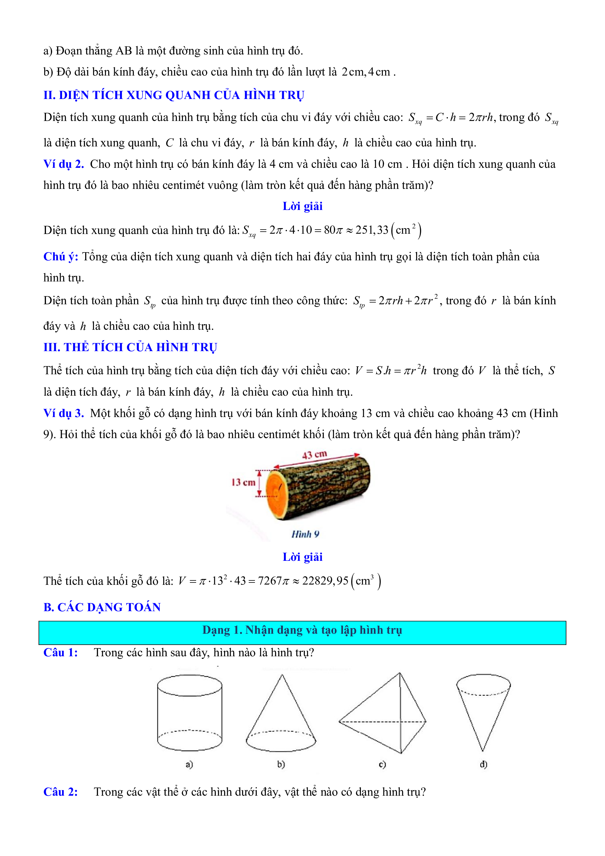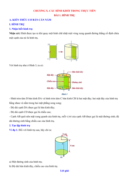 CHƯƠNG X. CAC HINH KHÔI TRONG THƯC TIÊN BÀI 1. HINH TRỤ