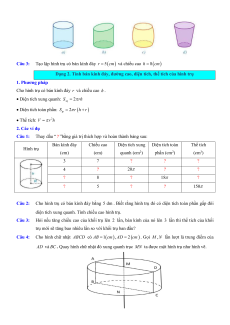Câu 1: Thay dấu “? ”bằng giá trị thích hợp và hoàn thành bảng sau: Bán kính đáy Chiều cao Diện tích xung Diện tích toàn Thể tích Hình trụ (cm) (cm) quanh (cm2) phần (cm2) (cm3) 3 7 ? ? ? 4 ? 20 ? ? ? 8 ? 18 ? ? 5 ? ? 150