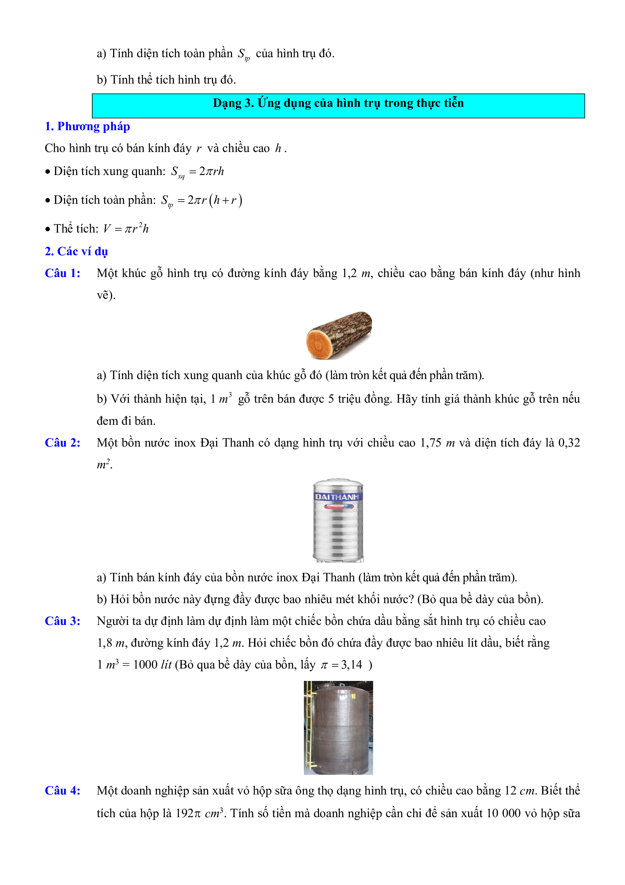 Dạng 3. Ứng dụng của hình trụ trong thực tiễn 1. Phương pháp